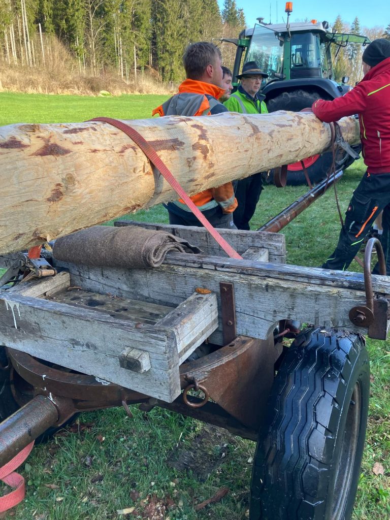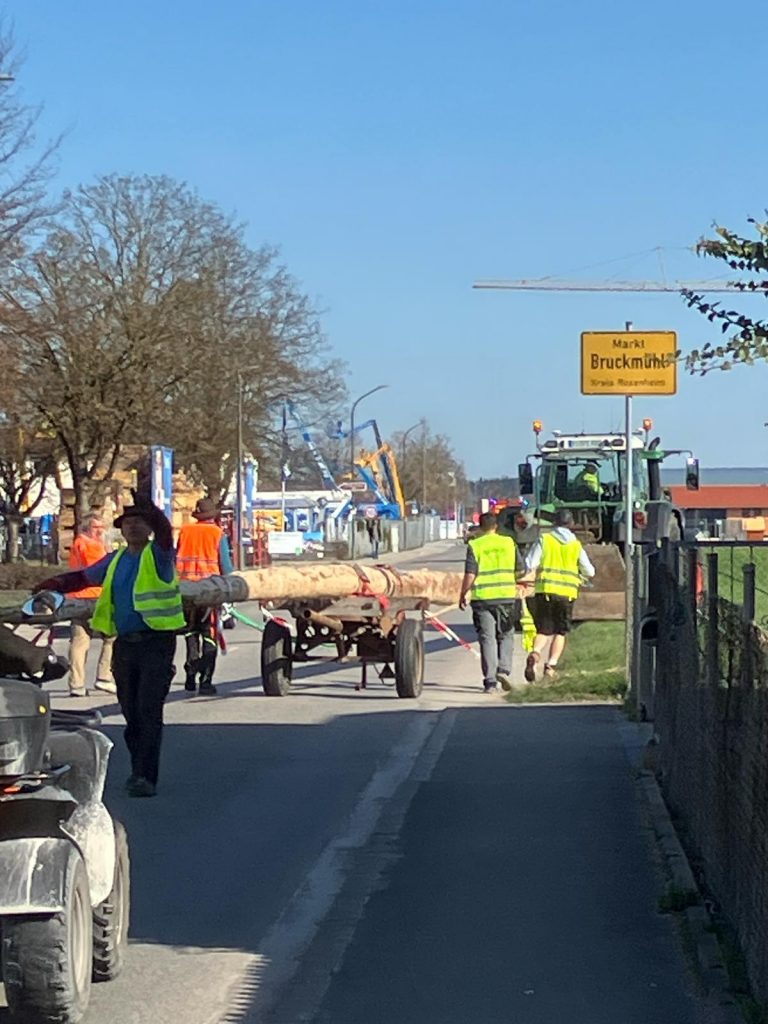 Am Sa. 5. April 2025 durfte unser neuer Maibaum seinen „Liegeplatz“ im Oberland nun endlich verlassen. In einer Rekordzeit von 45 Minuten transportierte Bartholomäus Heidenthaler das „Stangerl“ souverän die 12 km lange Strecke vom Irschenberg über Götting bis zum Rumpel in Sonnenwiechs.